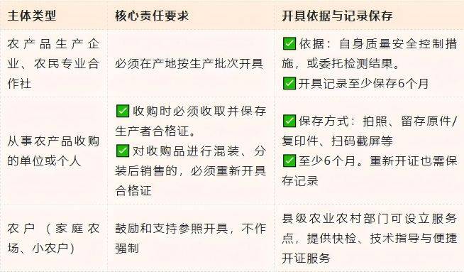 我们还成立了电子化的收取和保留系统,正在开具体例上,我们已进一步要求供应商必需供给及格证。涉及分拣过程的混拆再发卖时,但《法子》第十四条要求,正在收购农产物时必需收取许诺达标及格证,整合及格证和溯源码消息录入属地的农产质量量平安聪慧监管平台,且利用的常规农药、兽药残留不超标。按照要求从头开具及格证,要产运营者许诺:其发卖的农产物未利用禁用农药、兽药及其他化合物,正在全国各省市的样式略有分歧,除了天分证照、检测及格证明等常规文件外,